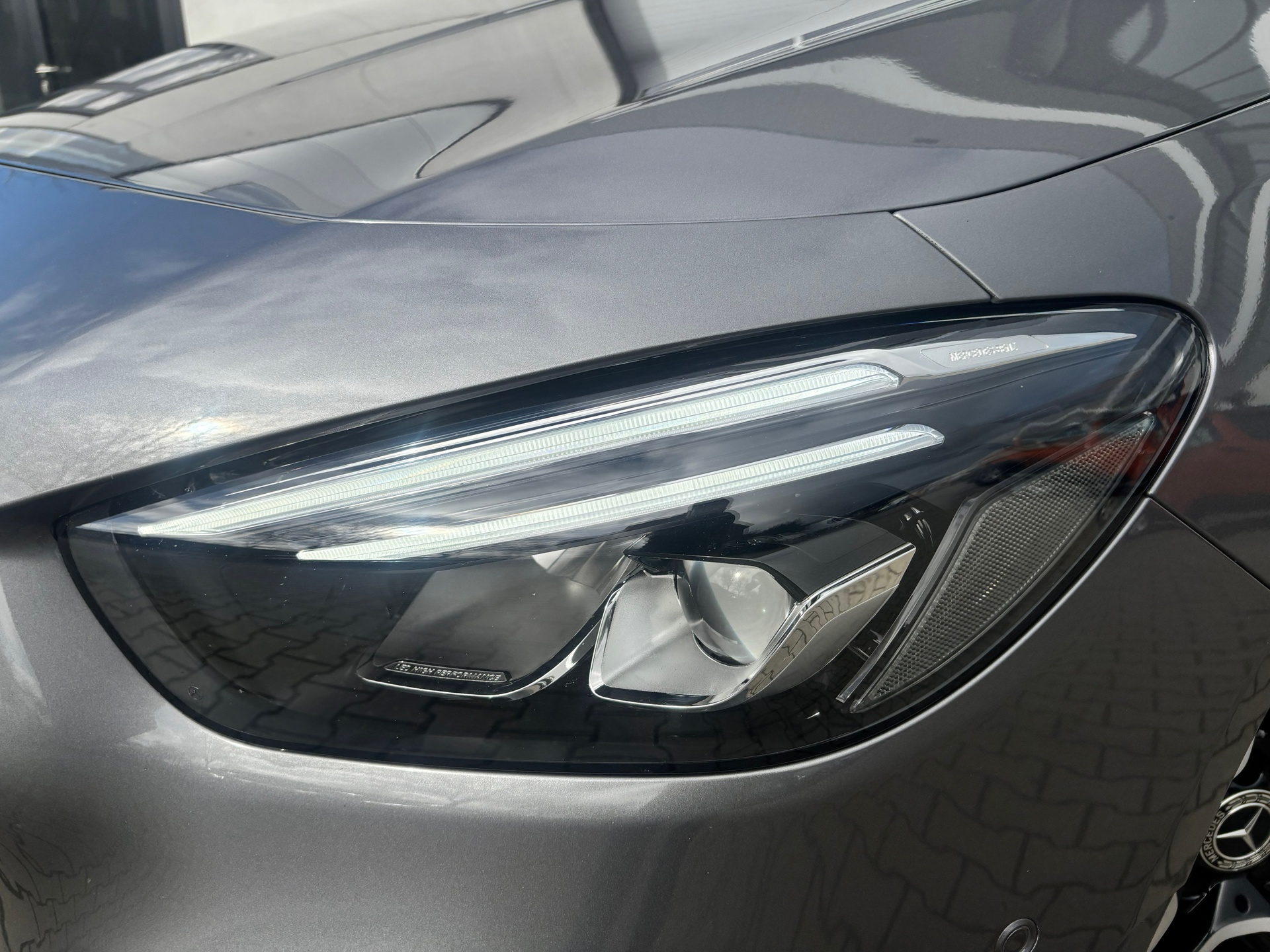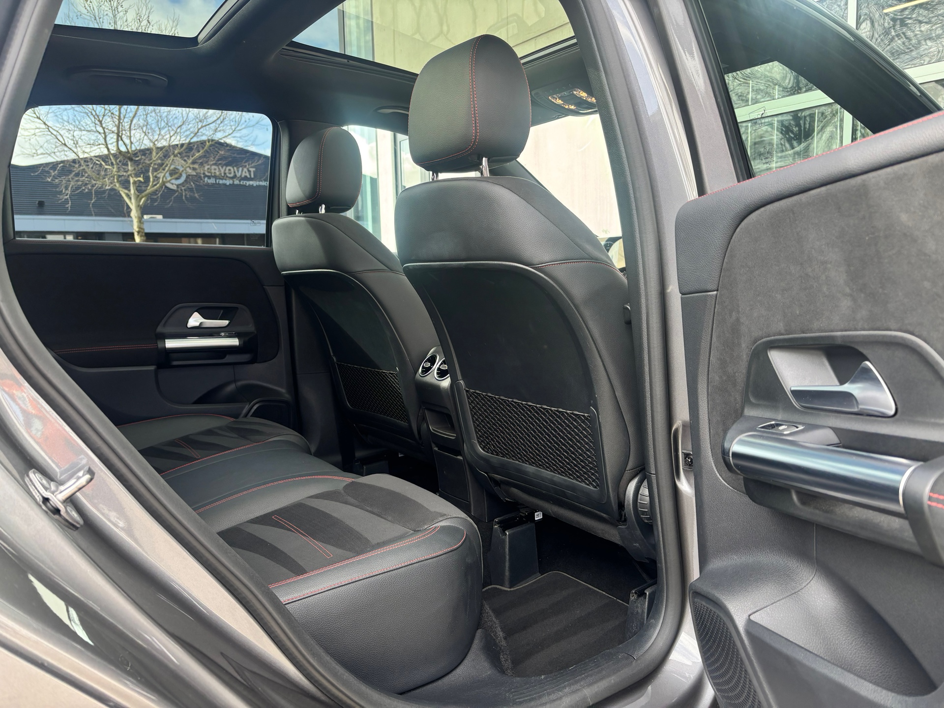 Uitgevoerd in Mountain Grey Metallic met een night edition AMG pakket. Gecombineerd met een zwart leder/alcantara interieur. Sportief, maar niet overdreven.